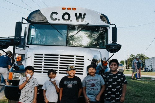 Our Church on Wheels is one of our favorite local missions. It is a modified school bus painted like a Holstein cow,